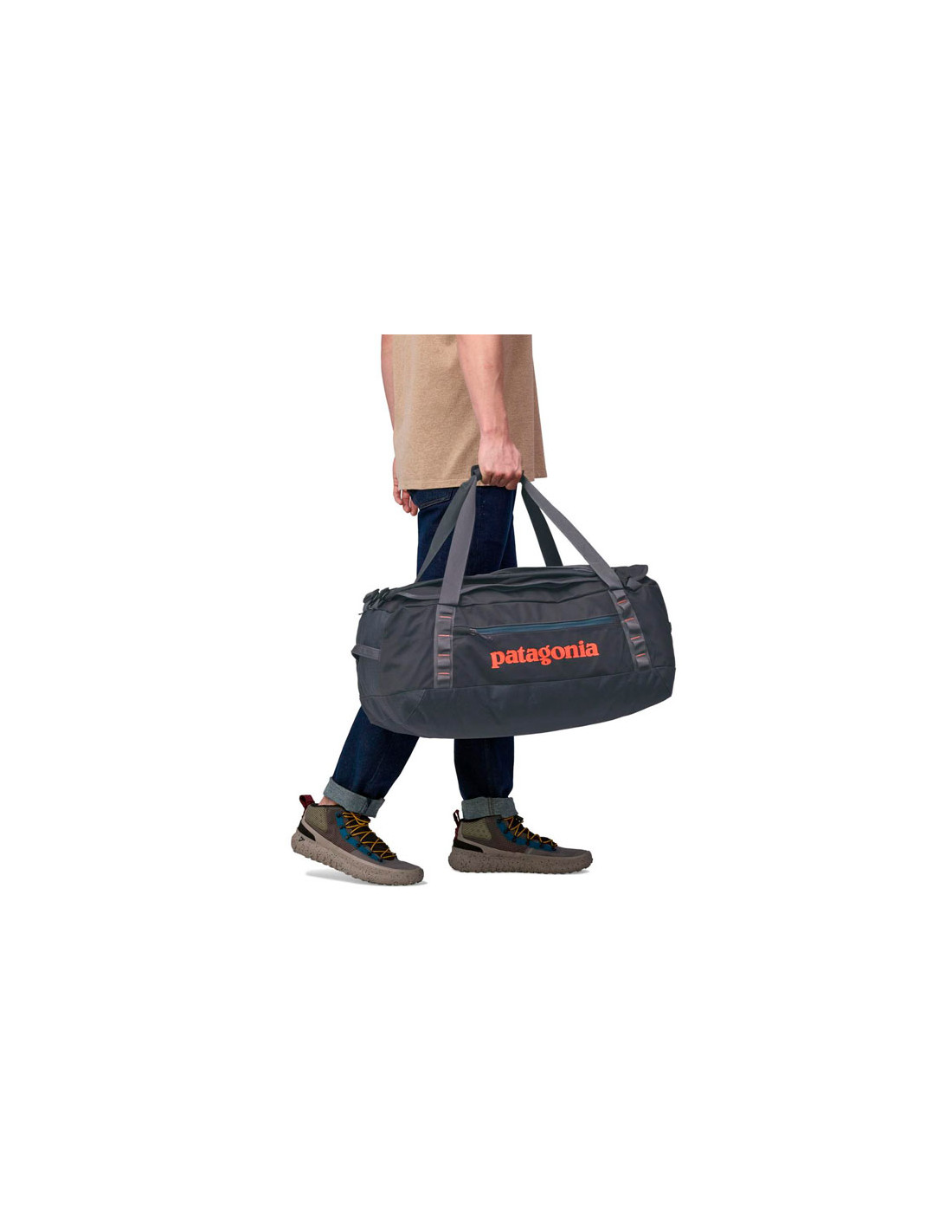 Patagonia prekės ženklo kelioninis krepšys, pagamintas iš atsparaus ir patvaraus audinio, leidžiančio saugiai ir patogiai laikyti visus savo daiktus.