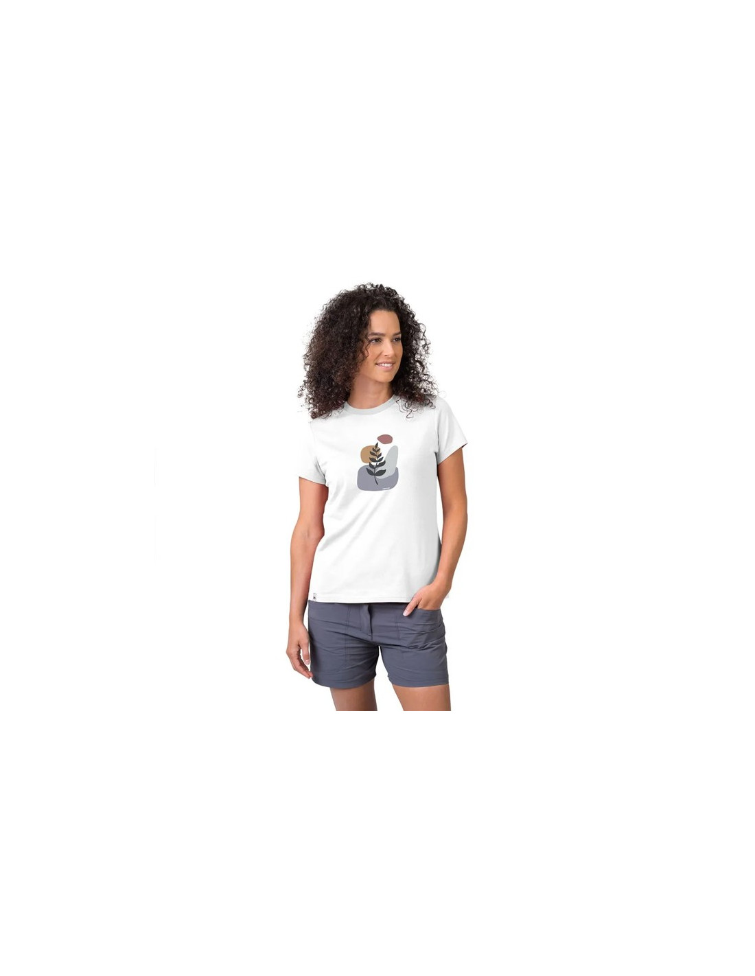Moteriški marškinėliai ARIA, pagaminti iš 100 % medvilnės, suteikia išskirtinį komfortą dėl laisvo prigludimo. Jo klasikinį apvalų kaklą ir trumpų rankovių dizainą papildo gamtos raštas ant krūtinės. Šie marškinėliai, sveriantys 160 g/m2, yra kokybiški ir patvarūs.