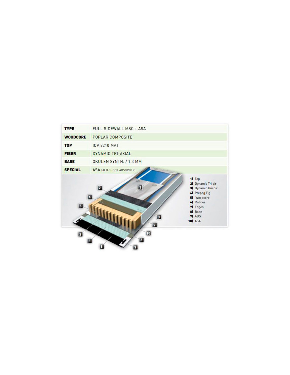 Konstrukcija labai kruopšti, ji pagaminta iš tuopos medienos šerdies, sutvirtintos triašiu stiklo pluoštu, titano lakštu, taip pat ABS šoninės sistemos, siekiant pagerinti smūgių absorbciją.