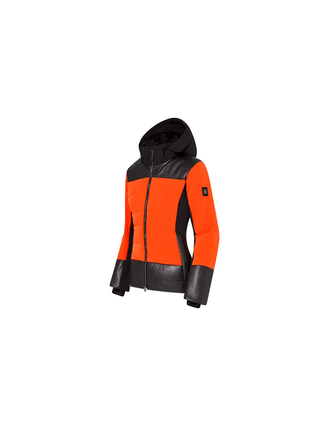 Prekės ženklo Descente hibridinė striukė, skirta kalnų slidinėjimui, 4 krypčių striukė su sintetinės odos detalėmis. Audinio apdailai rūpinamasi, kad dirbtinė oda išliktų minkšta ir elastinga bei netrukdytų judėti. Nauja funkcija yra DESCENTE logotipas ant nugaros, pagamintas naudojant D lazerį ant sintetinės odos.