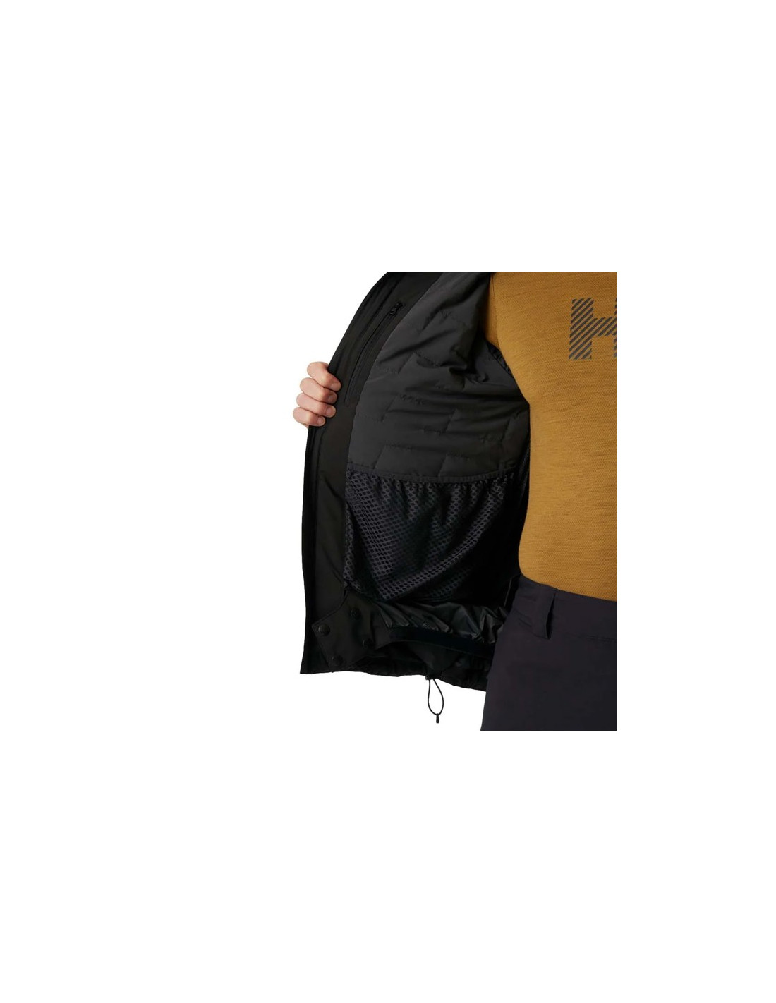 - Rankų kišenės, krūtinės kišenė su akinių audiniu ir slidinėjimo abonemento kišenė.