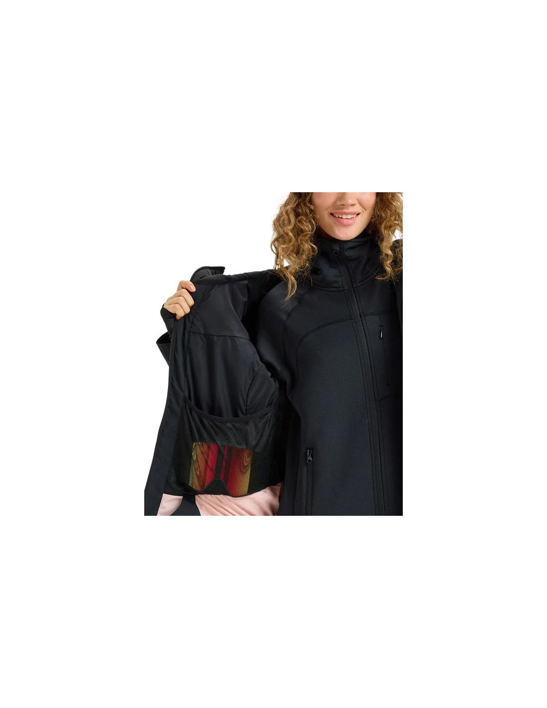 - Rankų šildytuvo kišenės, dvi ant krūtinės, vidinė kišenė prietaisams ir akiniams, slidinėjimo abonemento kišenė ant rankovės.