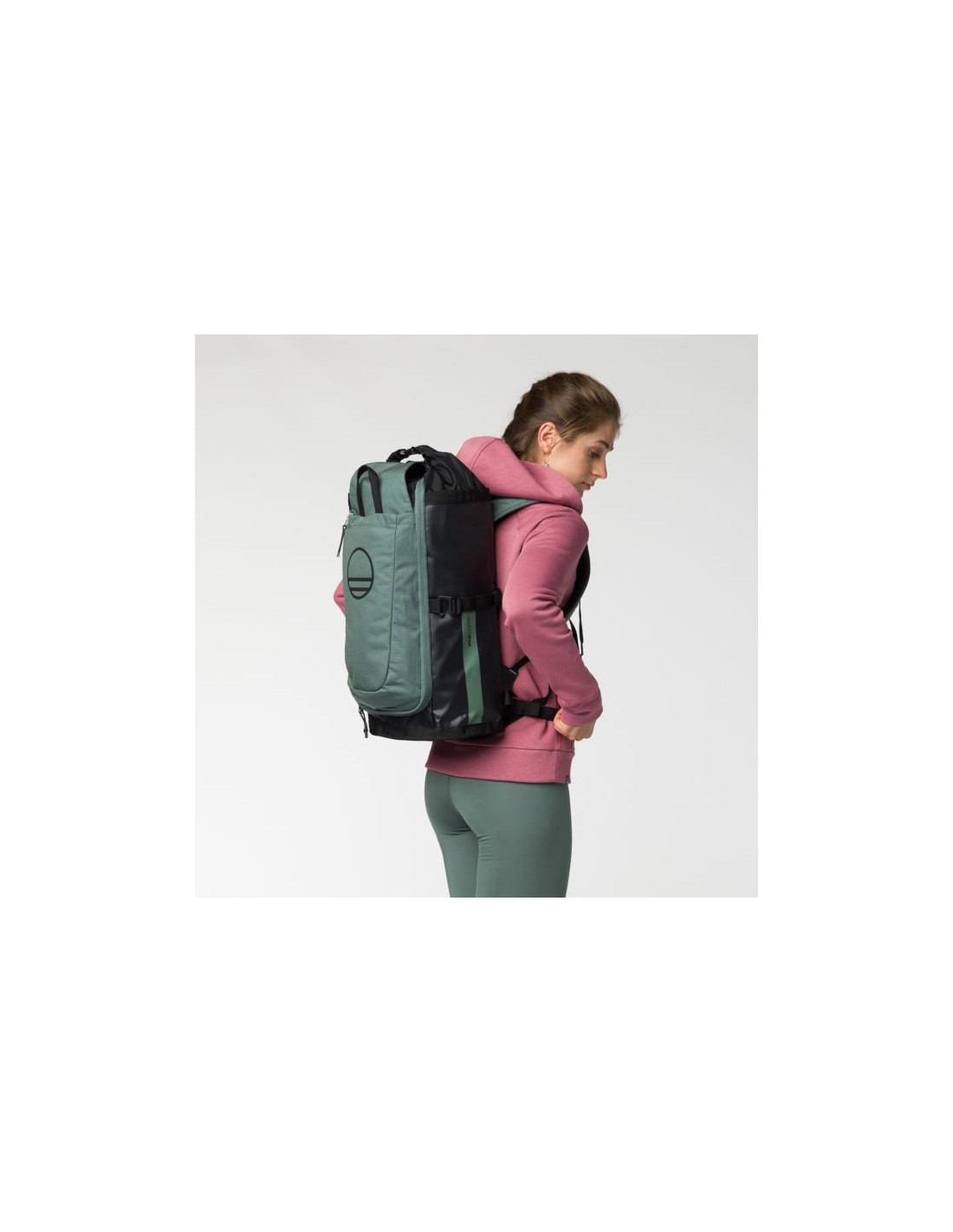 Siekiant stabilesnio transportavimo, šoniniai suspaudimo dirželiai taip pat veikia kaip lyno stabilizatoriai arba gali būti paslėpti rėme, kai nenaudojami, kad būtų glotnesnė. Kalbant apie atramą ir nešiojimo patogumą, tai tikrai labiau dienos kuprinė, o ne virvinis krepšys su itin paminkštinta galine dalimi, paminkštintais pečių dirželiais ir paminkštintu juosmens diržu, todėl nepajusite, kad greitieji traukimai jus slegia. . Jie dūrė tau į nugarą.