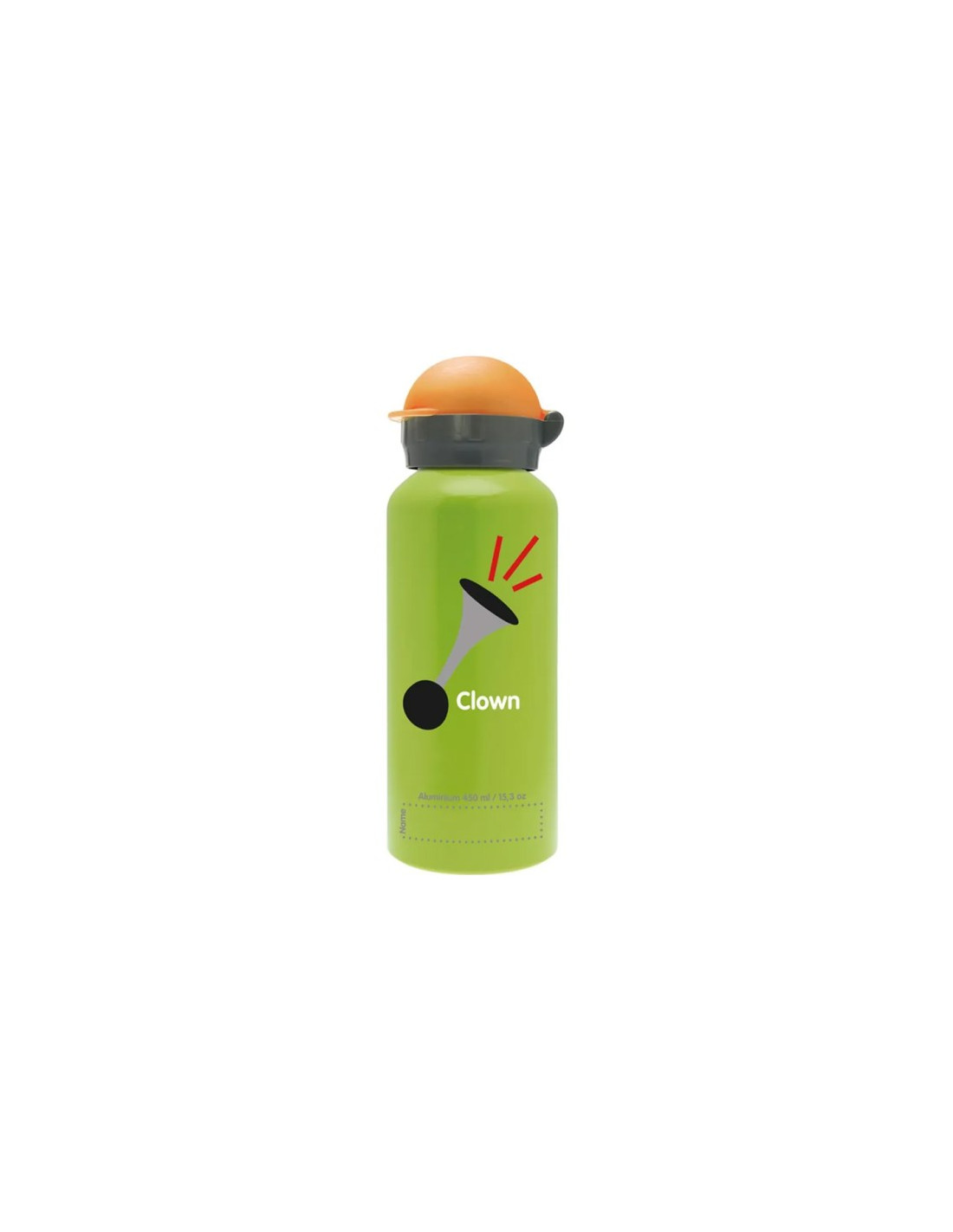 De 0,45L Faces aluminium fles is lichtgewicht, resistent en recyclebaar. Het is speciaal ontworpen voor kinderen en heeft een gebruiksvriendelijke hitcap en een ruimte om de naam te schrijven. Het leuke clownontwerp zal de kleintjes vergezellen op hun avonturen.