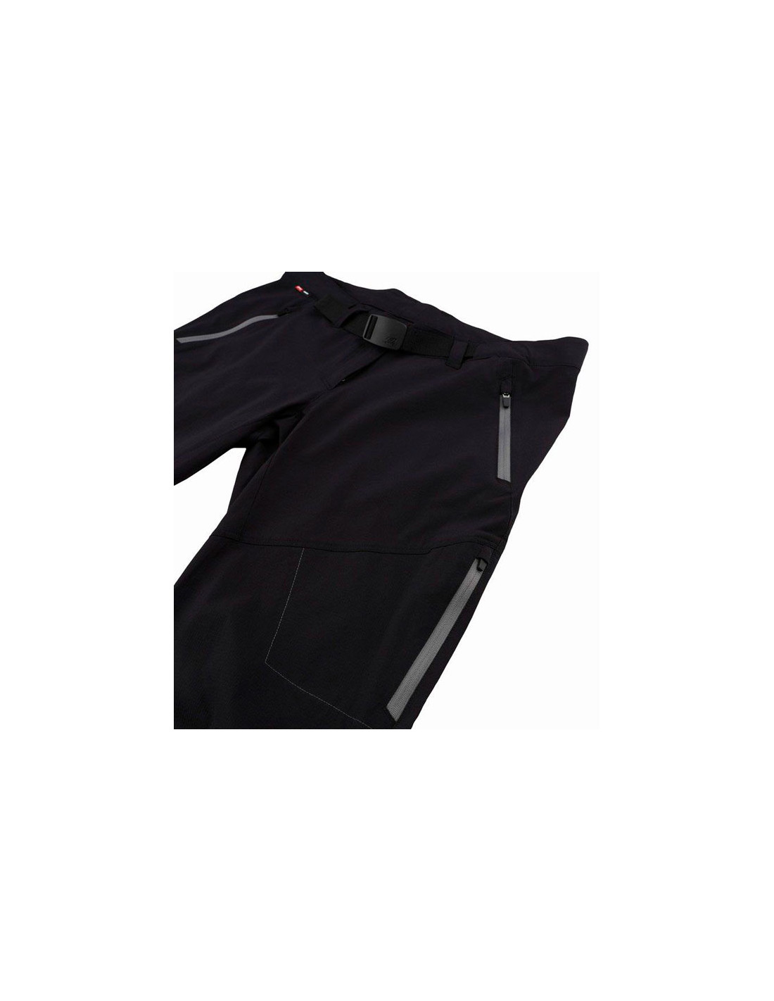 - 5 zakken met ritssluiting: twee grote aan de zijkanten, één op de dij en twee aan de achterkant.