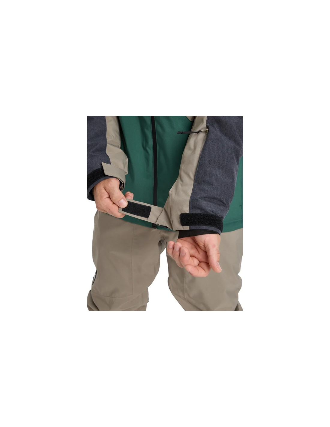 - Zakken: voor pas op de mouw, op de borst, twee handwarmers, binnenzak voor apparaten en binnenzak van gaas.