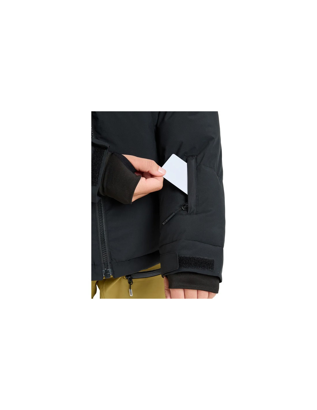 - Handwarmerzakken met ritssluiting, skipaszak op de mouw en interne zakken voor apparaten en masker.