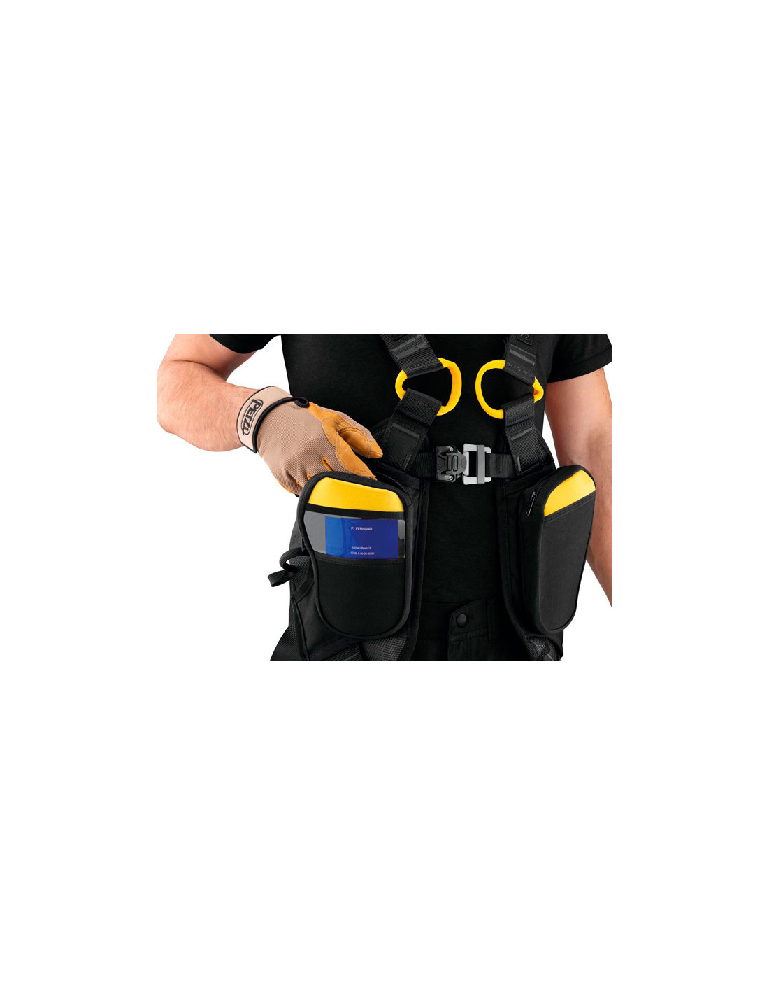 - Dorsaal bevestigingspunt voor valbeveiligingsverbinding.