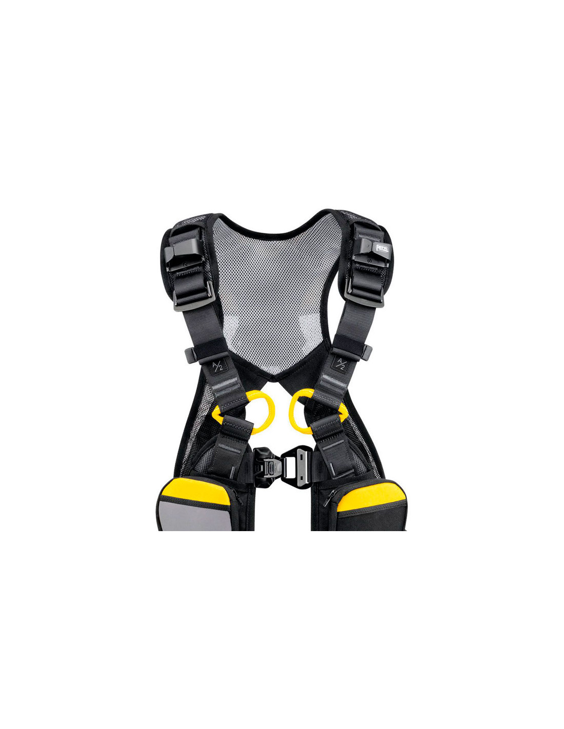 - Dorsaal bevestigingspunt voor valbeveiligingsverbinding.