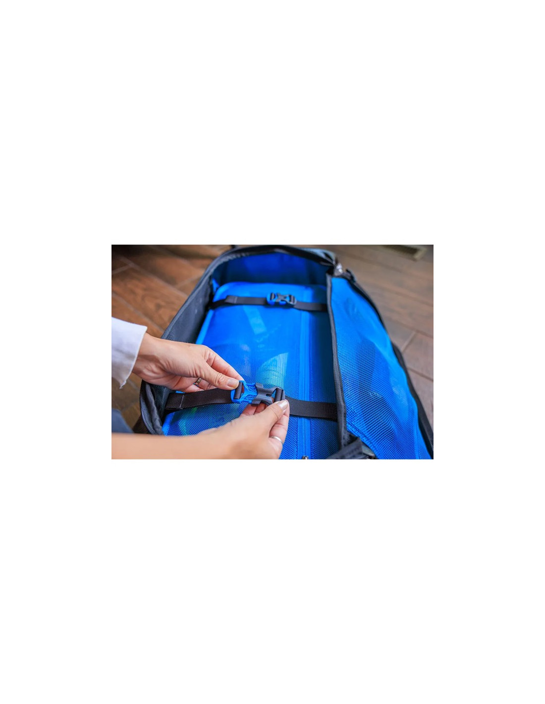 - Gerecycled 900D ripstop polyester stof met TPU-coating.