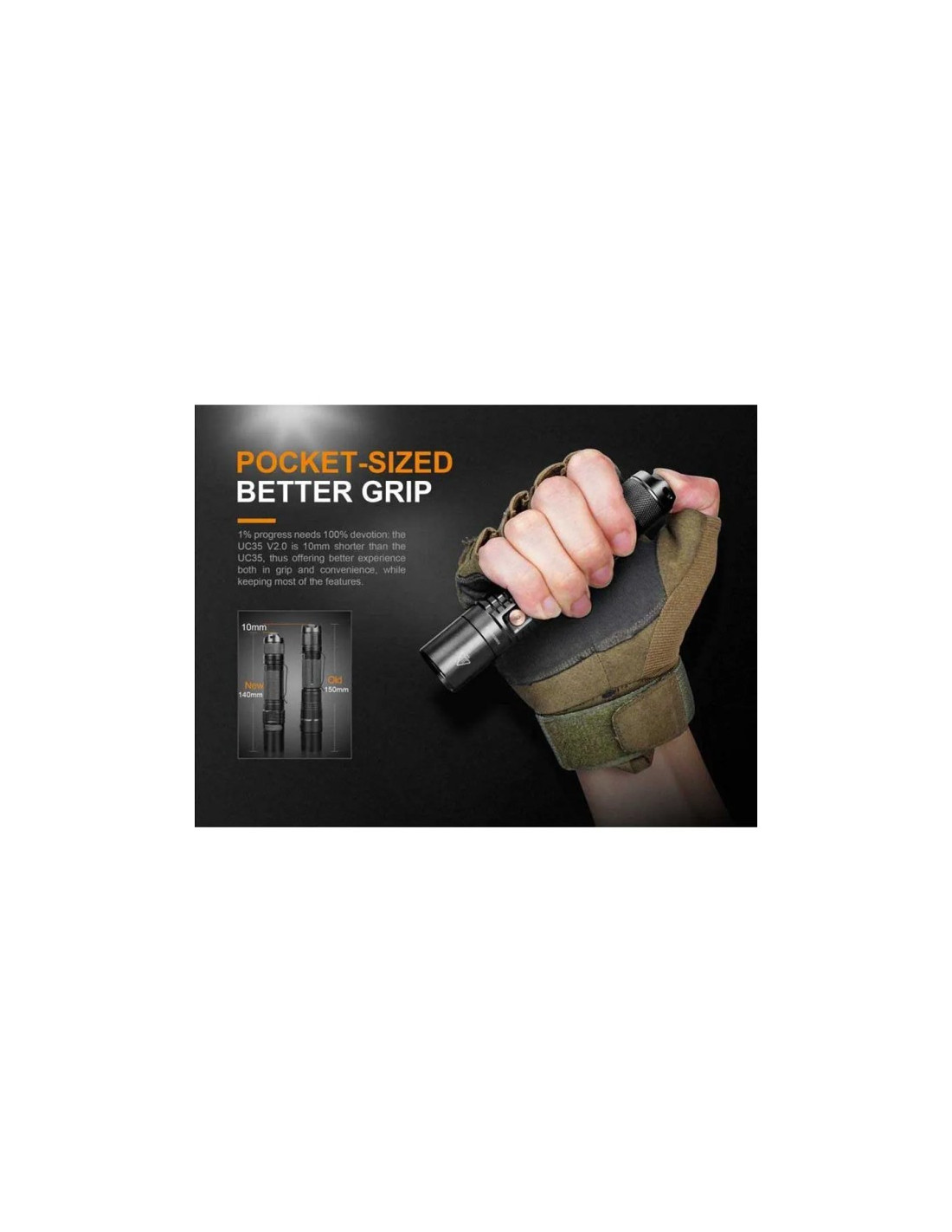 De Fenix UC35 V2.0 zaklamp is een tactische zaklamp in zakformaat, compact en oplaadbaar via Micro USB. Hij biedt een vermogen tot 1000 lumen en een maximaal bereik van 266 meter dankzij de Cree XP-L HI V3 LED.