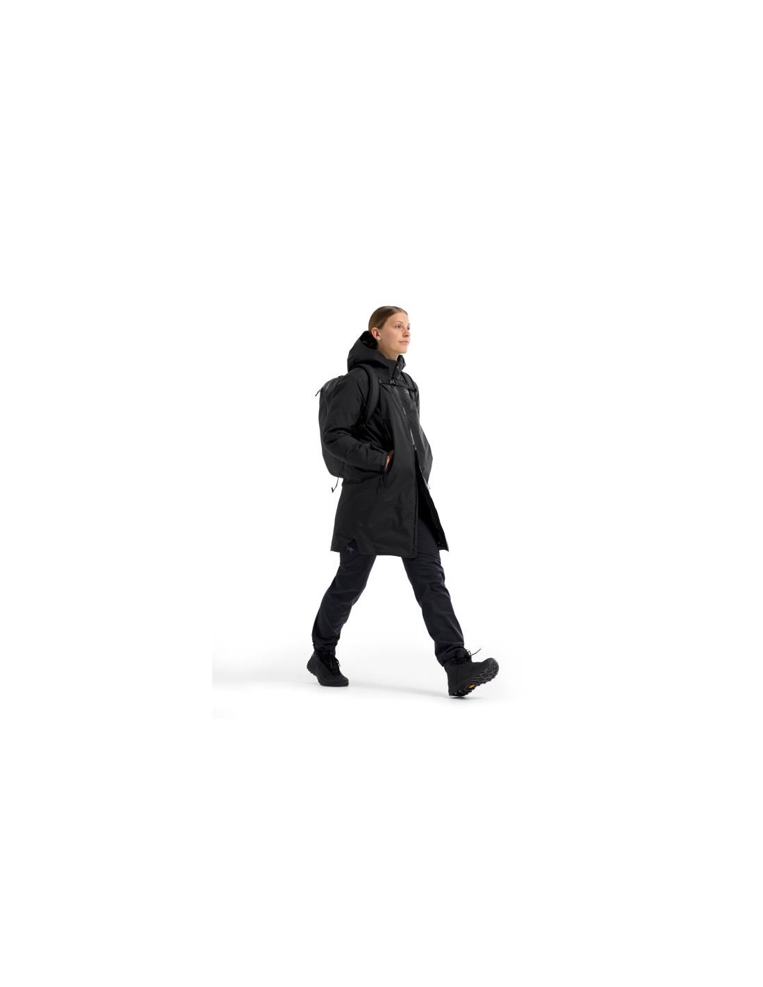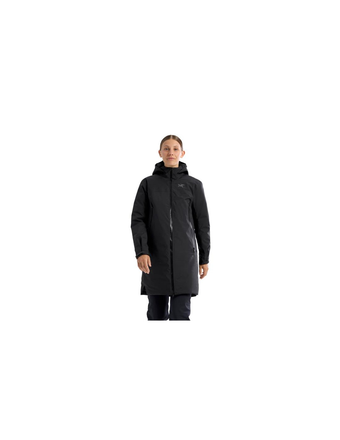- Długość parki sięga poniżej kolan, zapewniając ciepło i osłonę