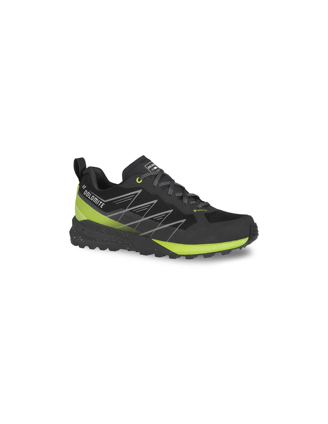 Cholewka, wykonana w technologii bezszwowej z certyfikatem GRS, wraz z systemem Dolomite Wrapping System, wygodnie i bezpiecznie otula stopę, zapewniając doskonałe wsparcie w obszarze podbicia i kostki. Amortyzująca podeszwa środkowa, wykonana w 20% z proszku pochodzącego z recyklingu, oraz podeszwa Vibram® gwarantują stabilność, przyczepność i amortyzację na każdej powierzchni.
