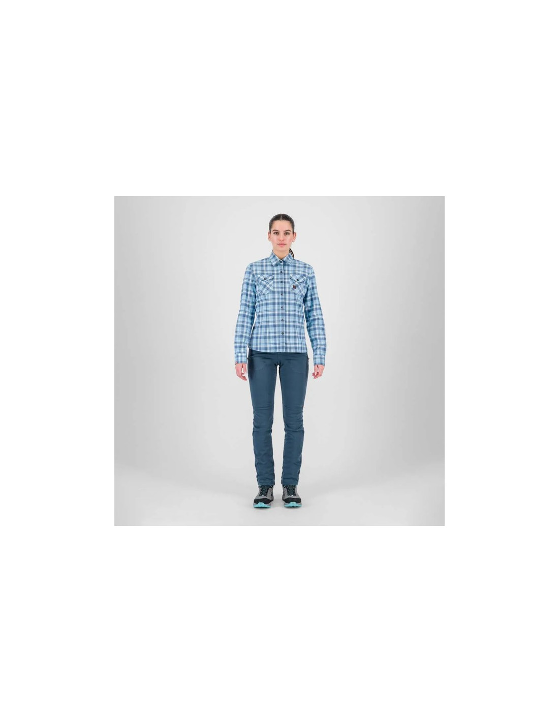 Damska koszulka z długim rękawem Martora Karpos w kolorze Mountain Spring / Bering Sea to modny i funkcjonalny element garderoby przeznaczony do aktywności na świeżym powietrzu.