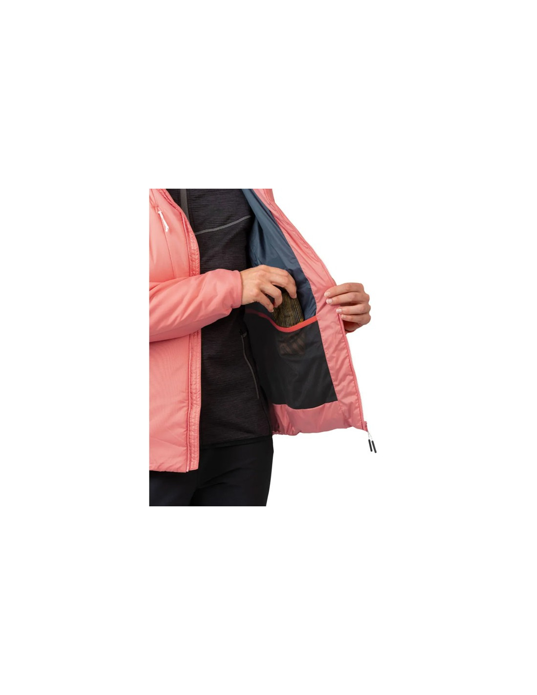 Jego techniczna konstrukcja obejmuje anatomicznie ukształtowane rękawy i elastyczne mankiety, a także regulowany dół dla indywidualnego dopasowania. Może być stosowany jako samodzielna kurtka lub jako warstwa izolacyjna pod inną odzież.