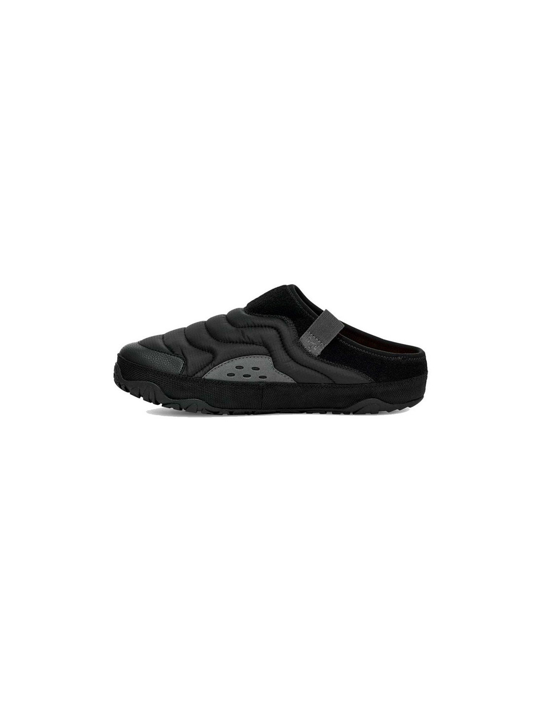 Wytrzymała podeszwa zewnętrzna ReEmber Terrain, oferująca przypominający chmurę wsuwany but z kołnierzem przypominającym wełnę z poliestru pochodzącego w 100% z recyklingu i wkładką Teva ULTRA-COMF, jest wyposażony w celu poprawy przyczepności.