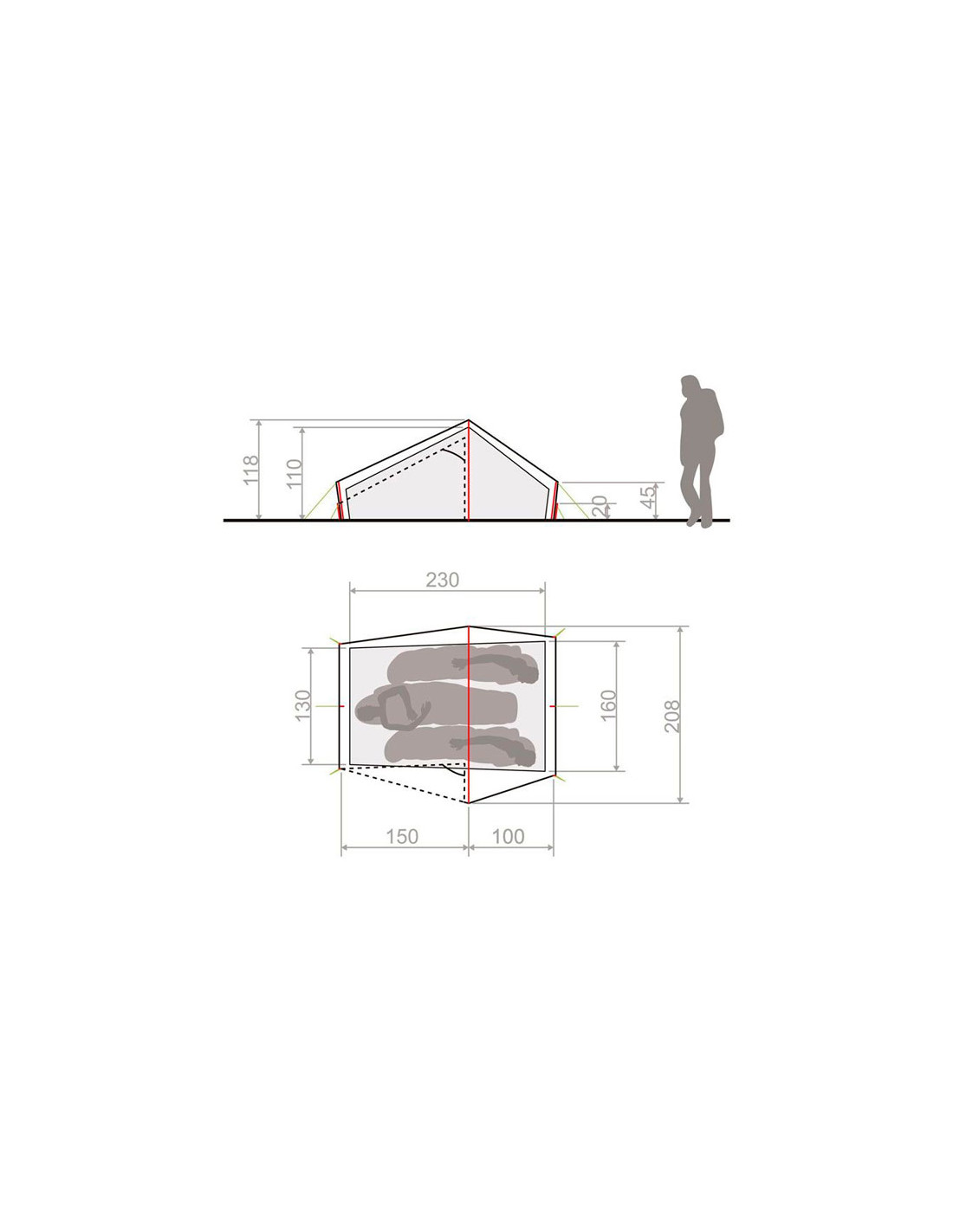 - Maksymalne wymiary zewnętrzne 250 cm długości, 208 cm szerokości i 118 cm wysokości.