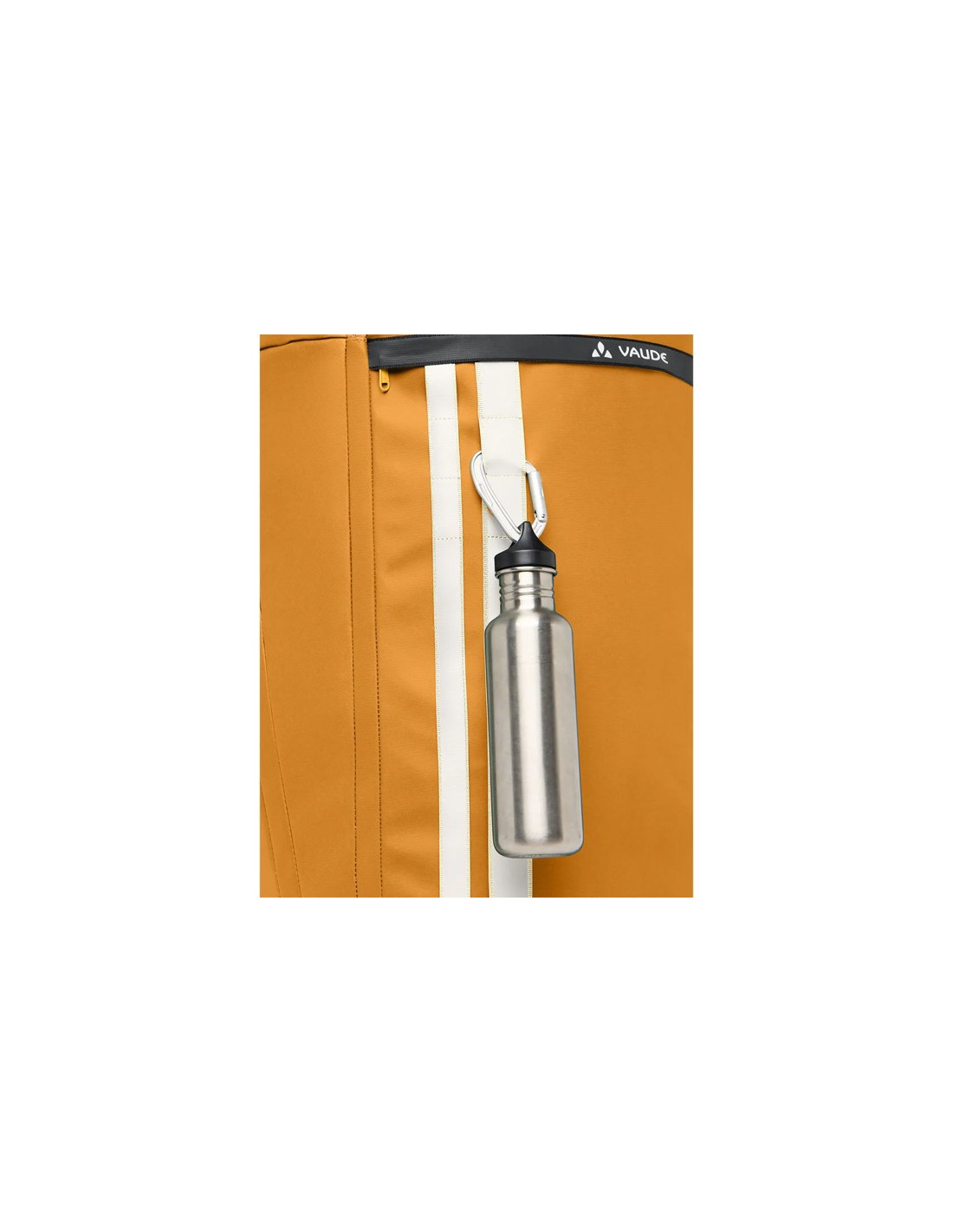 Na przodzie znajdują się dwa odblaskowe paski VAUDE z punktami mocowania karabińczyków, sznurowadeł lub butów. Aby ułatwić przechowywanie, wewnętrzna konstrukcja jest demontowana, a materiał przechowywany jest w twardej powłoce, co zmniejsza jej głębokość o 20 cm.