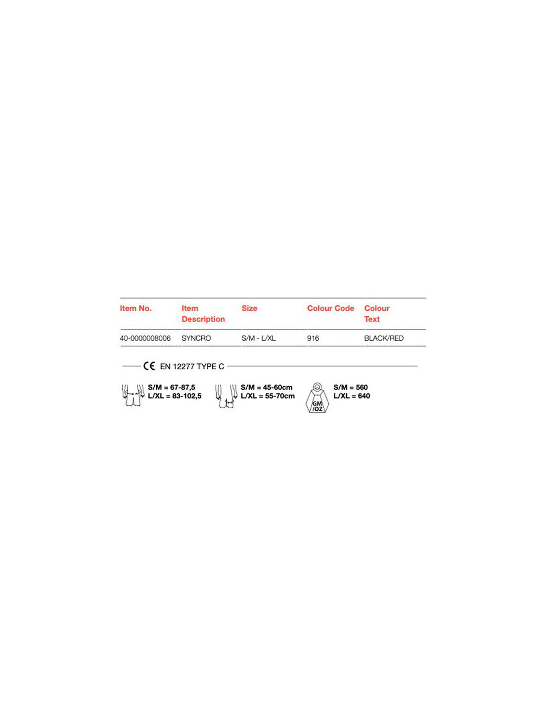 *Tabela rozmiarów dostarczona przez producentów. Barrabes.com nie ponosi odpowiedzialności za jakiekolwiek możliwe zmiany wprowadzone bez wcześniejszego powiadomienia, mają one charakter orientacyjny.