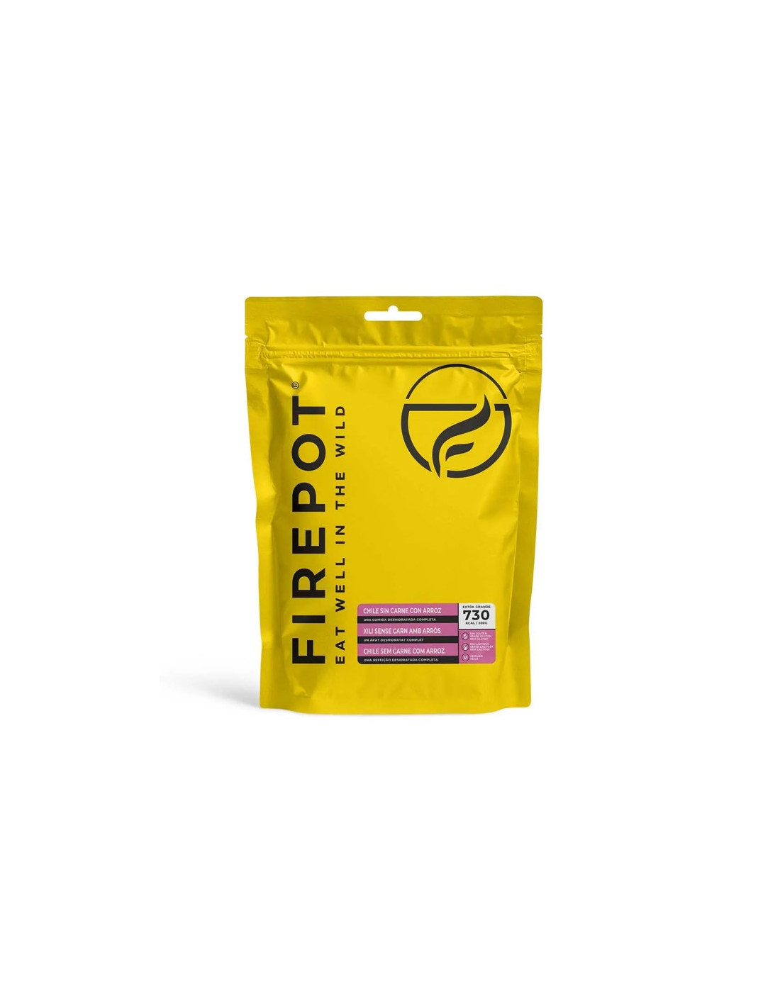 O XL Meatless Chili with Rice da Firepot é uma versão vegana do tradicional chili con carne, ideal para uma refeição quente e nutritiva nas suas aventuras ao ar livre. Este prato extragrande combina soja cozida lentamente com chiles fumados e feijão, servido com arroz.