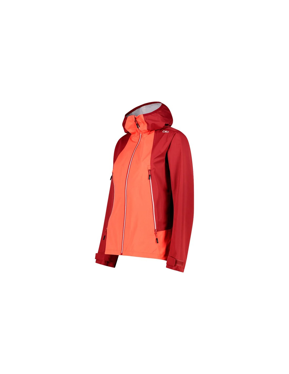 - Colarinho alto com capuz integrado ajustável.