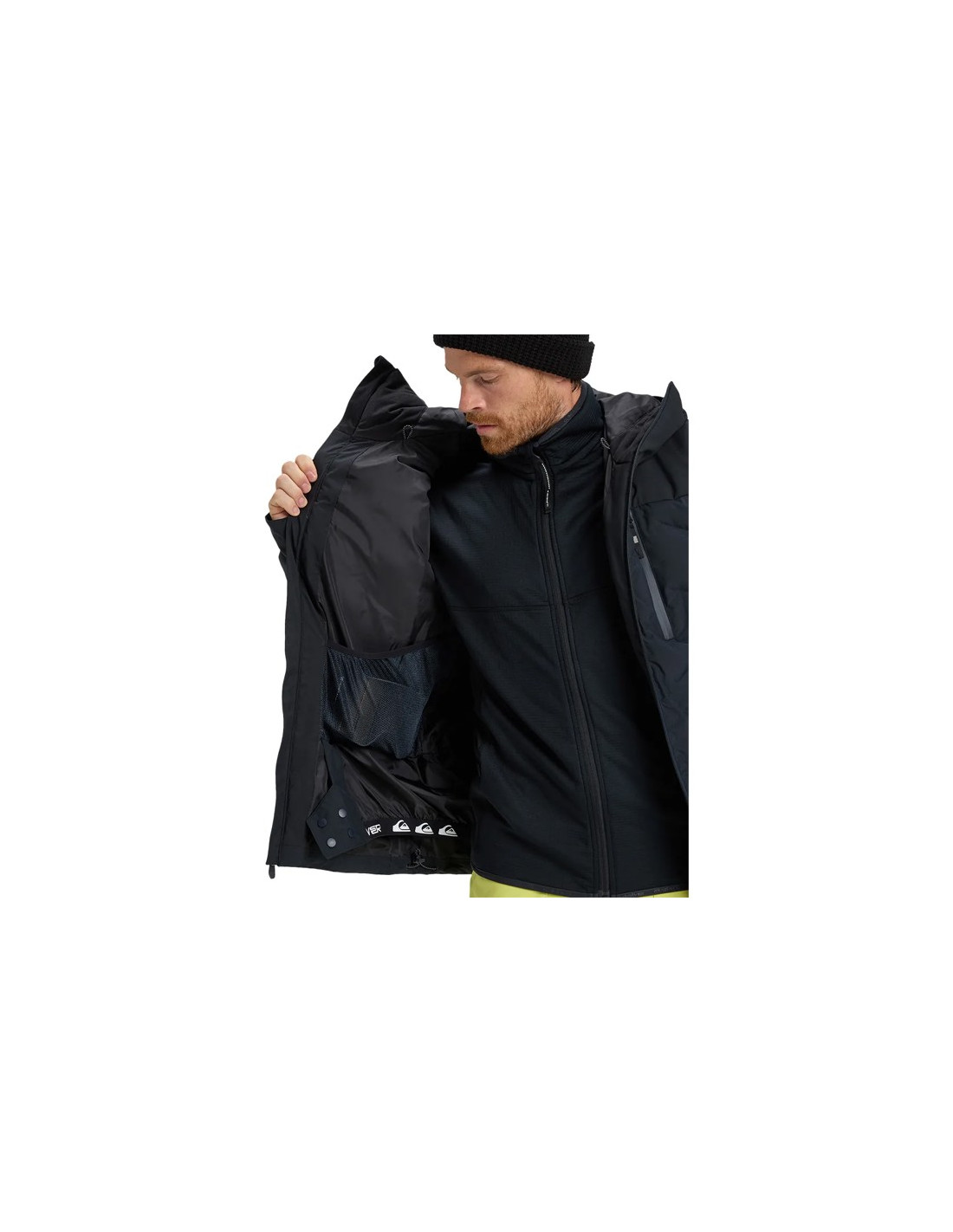 - Bolsos: para passe de esqui na manga, no peito, dois para as mãos, um bolso interno para dispositivos e um bolso de malha.