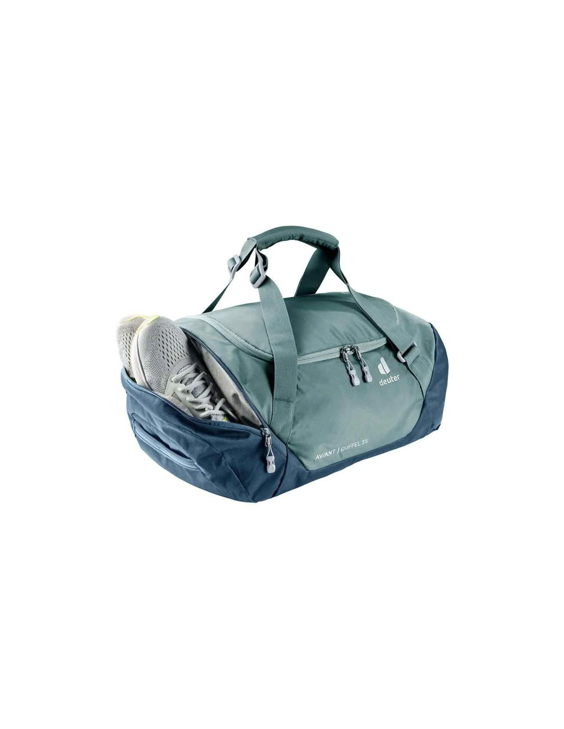 A bolsa de viagem Deuter Aviant Duffel 35 oferece amplo espaço para suas roupas e equipamentos esportivos. As suas alças ajustáveis permitem-lhe ser confortavelmente transportado no ombro ou nas costas. Este modelo sustentável, certificado pela bluesign® e Green Button, apresenta um fecho principal com fecho de segurança. Além disso, pode ser facilmente dobrado e armazenado no seu próprio bolso exterior integrado.