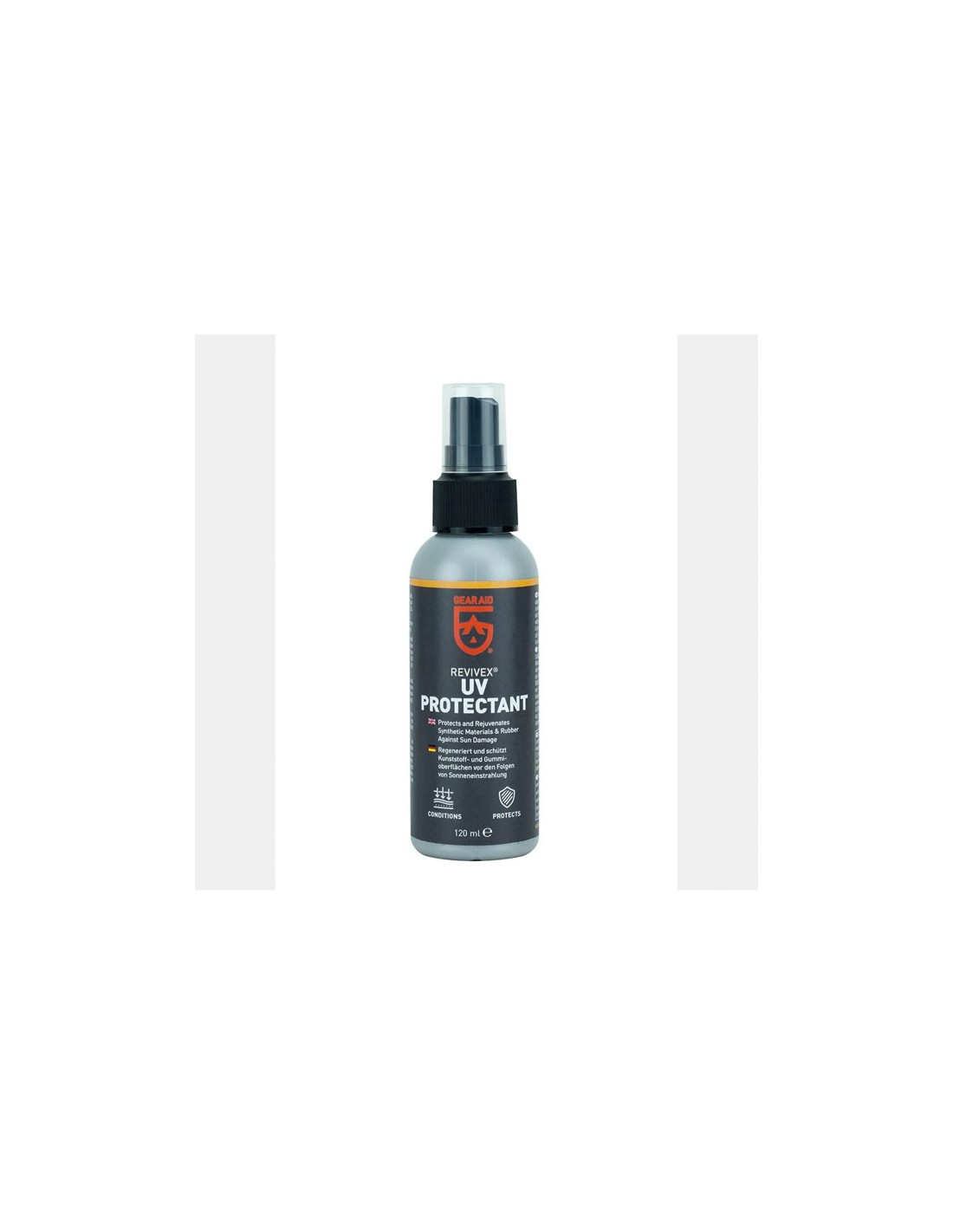 Protetor UV para equipamentos ao ar livre. Previne rachaduras e descoloração causadas pelo sol. Reabastece plastificantes, rejuvenesce superfícies e clareia cores. Ótimo para tendas, caiaques, roupas, etc.