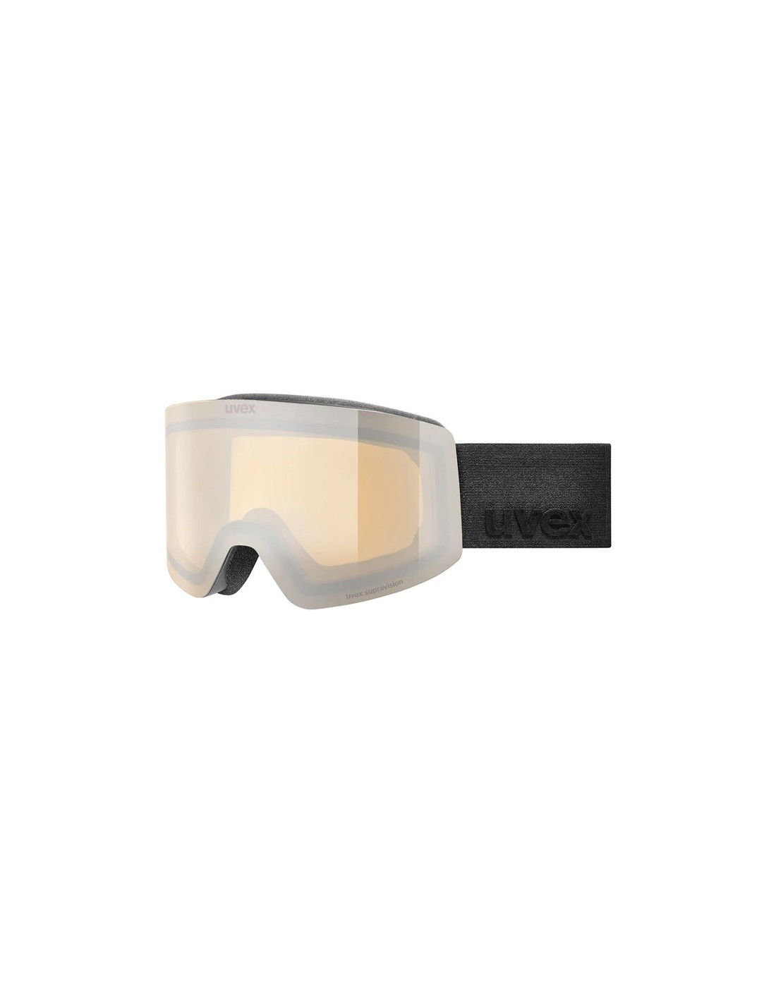 Óculos de esqui com lente cilíndrica dupla espelhada para um campo de visão amplo. Oferece proteção 100% UVA, UVB e UVC, bem como tratamento anti-nevoeiro para a supravisão®.