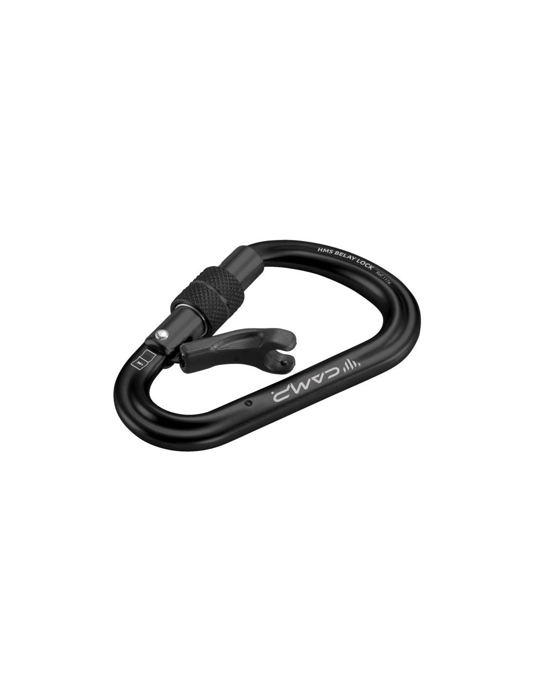 HMS Belay Lock karabin iz aluminijeve zlitine, opremljen s patentirano notranjo ročico. Dodatna ročica omogoča ustvarjanje notranjega obroča, znotraj katerega je mogoče vstaviti zanko vrvi ali absorberja energije, s čimer se izognete nenamernim vrtenjem, ki bi lahko obremenili karabin vzdolž pomožne osi.