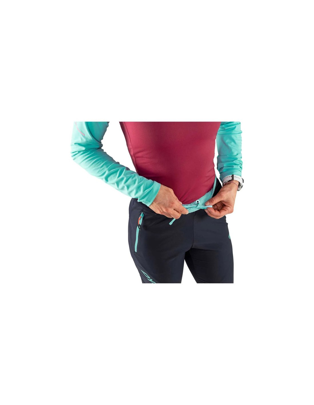 Ženske Alpine Hybrid hlače so tehnično oblačilo, zasnovano za tek po poteh v najhladnejših dneh jeseni in zime. Njegova izolacijska in elastična tkanina z rahlo krtačenim notranjim delom učinkovito ščiti pred mrazom in nudi veliko udobje skozi celotno aktivnost.
