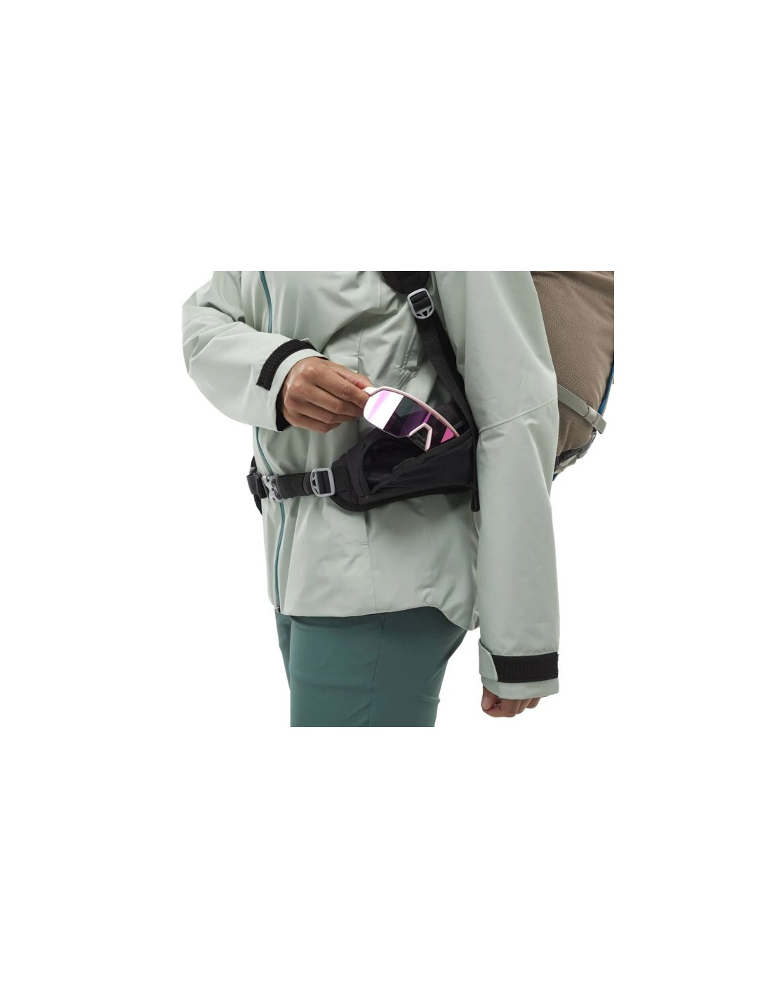 - Več žepov: 1 elastični spredaj, 1 elastični stran, 1 stran z zadrgo in 2 na pasu.