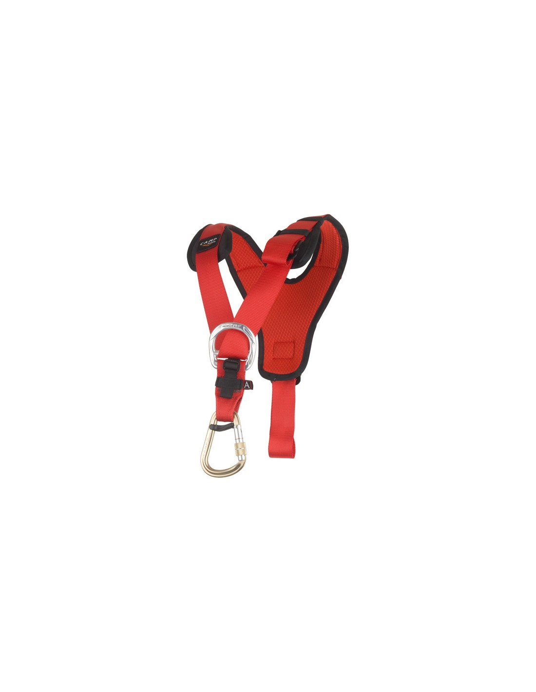 Camp Safety je vgradil patentiran konektor HMS Belay lock za pritrditev na spodnji del, opremljen z ročico proti vrtenju, ki se odpre. Ima napenjalni trak za ventralni blokator in sidrne obroče iz aluminijeve zlitine.
