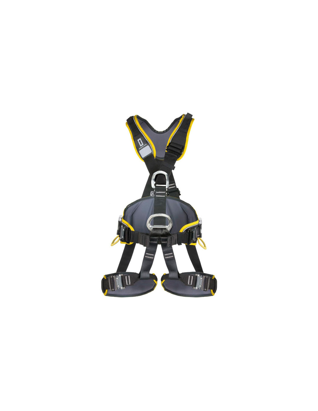 - Dorzalne in prsne pritrdilne točke za zaustavitev padca (EN 361) z dodatno oznako "A". Hrbtna točka je ravna, da ne moti pri nošenju nahrbtnika ali dihalnega aparata.