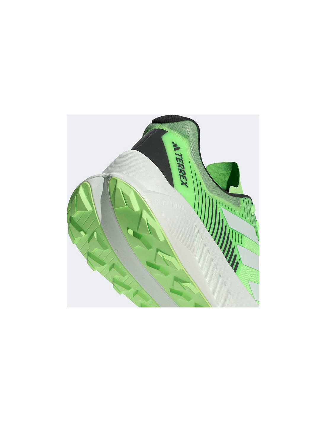 Adidas REPETITOR vmesni podplat z lahko peno nudi udobnejšo vožnjo in bolj gladek prehod, medtem ko se brezšivni elastični zgornji del prilega stopalu kot ulit in zagotavlja optimalno oporo na neravnem terenu.