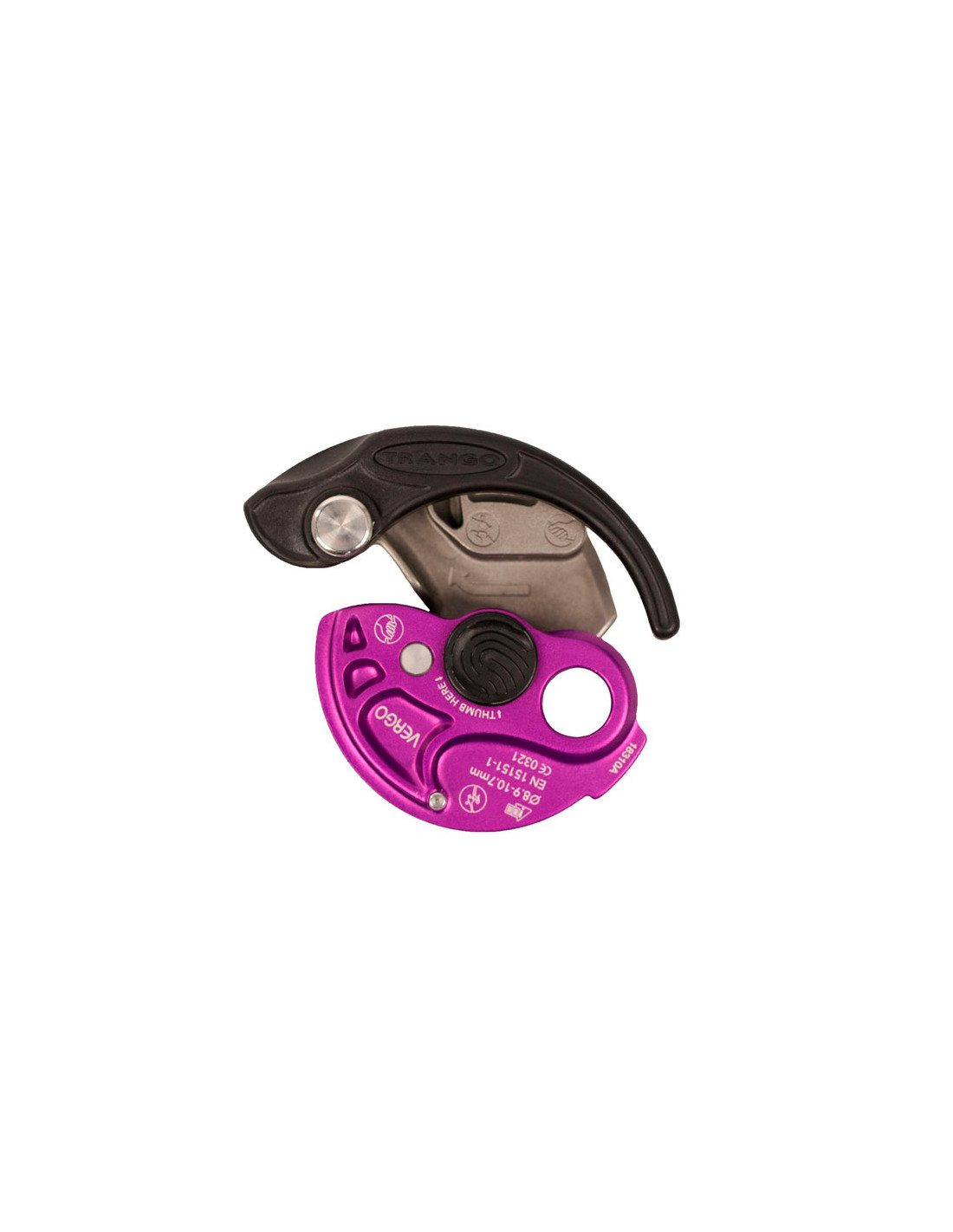 Preprosta varovalna naprava za vrv znamke Trango za športno plezanje, kompakten in ergonomski model, ki je enostaven za uporabo.