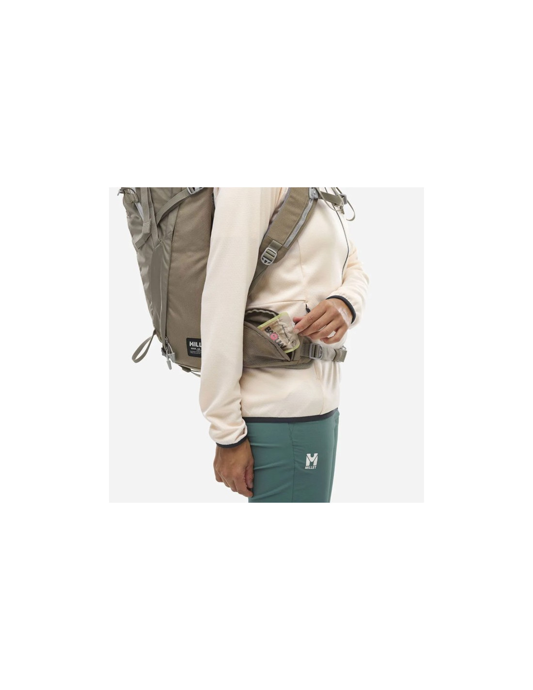 Tento batoh je vyrobený z recyklovaných materiálov a je udržateľnou voľbou pre turistov. Obsahuje funkcie, ako sú ergonomické popruhy pre ženy, popruhy na nastavenie zaťaženia, popruhy na opierky rúk, opasok s vreckom, kompresné popruhy, držiak na palice a viacero vreciek pre optimálnu organizáciu.