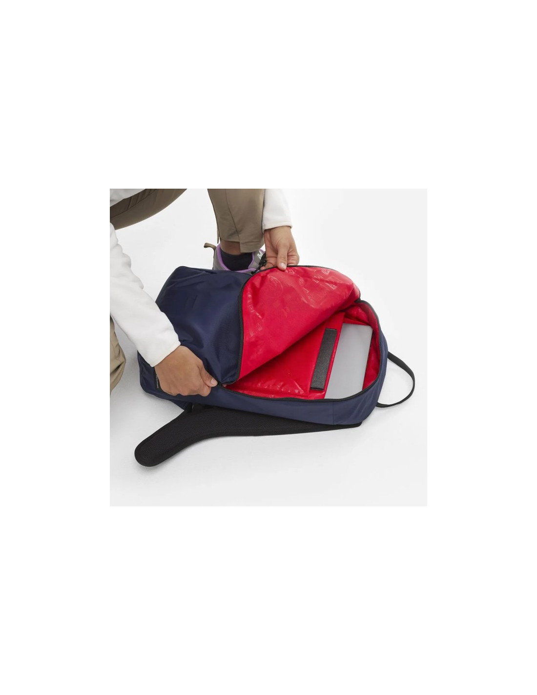 Interiér je starostlivo navrhnutý tak, aby mal veci usporiadané a prístupné. Obsahuje polstrovanú priehradku na ochranu notebooku a vnútorné vrecká na bezpečné uloženie menších vecí, ako sú telefón, kľúče alebo peňaženka.