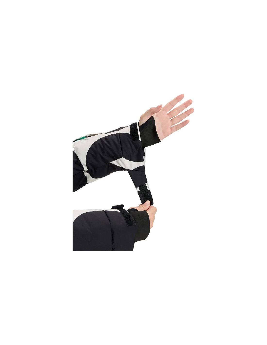 - Nastaviteľné manžety s integrovanými elastickými gamašami a otvorom na palec.
