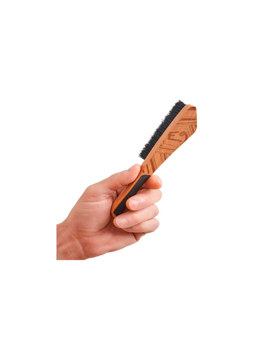 Lezecká kefa na bouldering a skalnaté oblasti. Chrbát obrúste, aby ste odstránili zničenú kožu. Ergonomický tvar a veľká plocha na čistenie svahov a veľkých priehrad. Vyrobené z dreva a prírodných štetín.