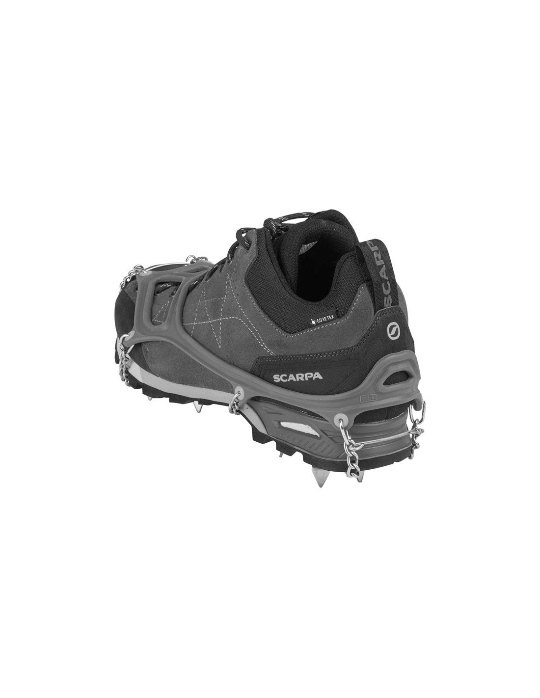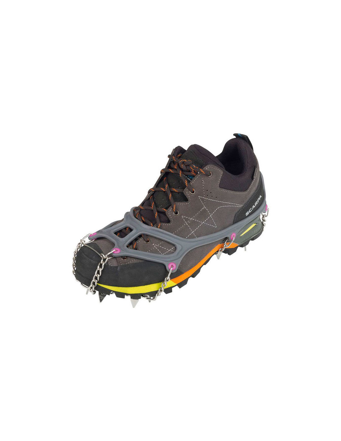 Dess 13 rostfria spetsar - robusta, slitstark och jämnt fördelad över hela sulans yta - garanti ett säkert grepp och exakt grepp, undviker farlig halka i närvaro på snö, is eller på ytor med lite grepp (lera, vått gräs, stenar med lavar etc.).