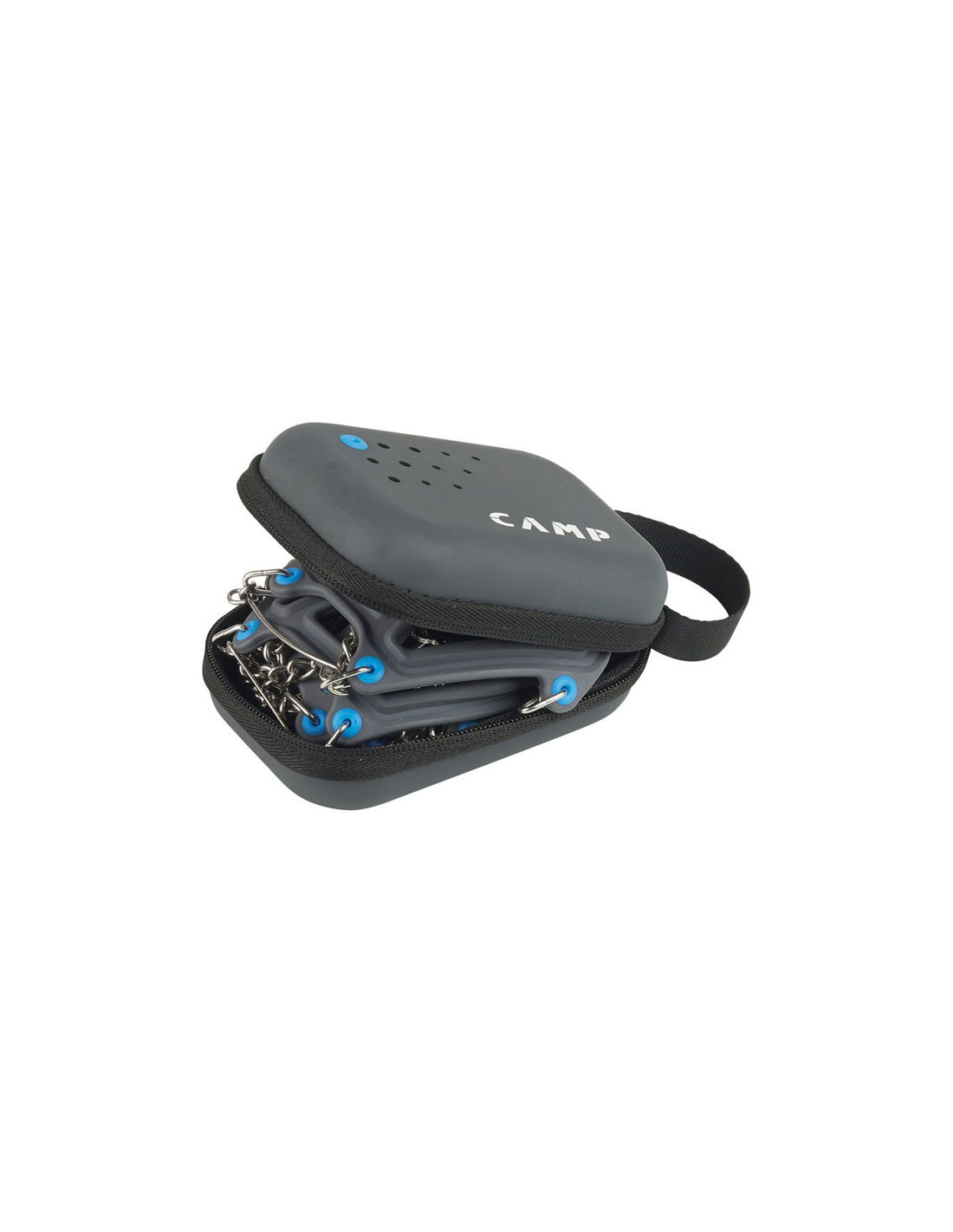 Det innovativa fästsystemet, tillverkat av superlätt elastiskt material, är speciellt omslutande och låter dig sätta på och ta av stegjärnet mycket snabbt. De Medföljande fodral, lätt och kompakt, kompletterar förslaget, vilket gör Ice Master Light till en produkt att alltid bära i ryggsäcken, redo att garantera grundläggande säkerhet under långa utflykter, höghöjdsrutter och vandringar.