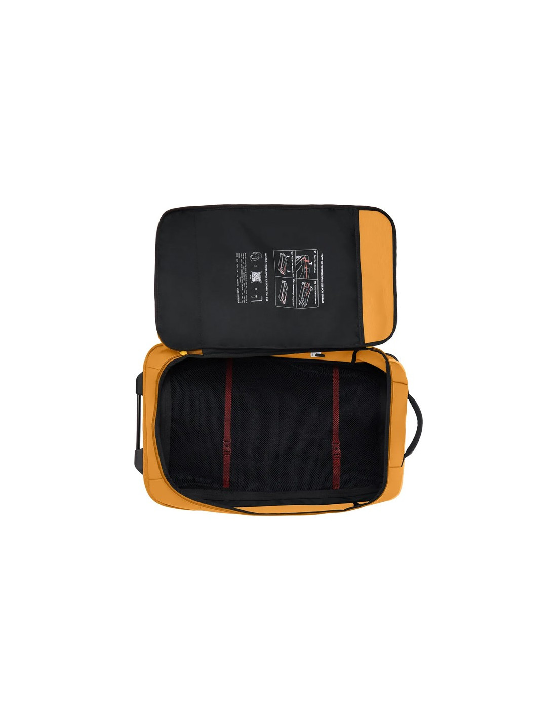 Den har tysta gummihjul och ett avtagbart teleskophandtag för bekväm transport över långa avstånd. De mjuka handtagen på kort- och långsidan gör att den kan bäras på olika sätt. Dessutom ger de reflekterande ränderna på framsidan inte bara en touch av stil, utan innehåller även praktiska fästen för linor, karbinhakar eller snören.
