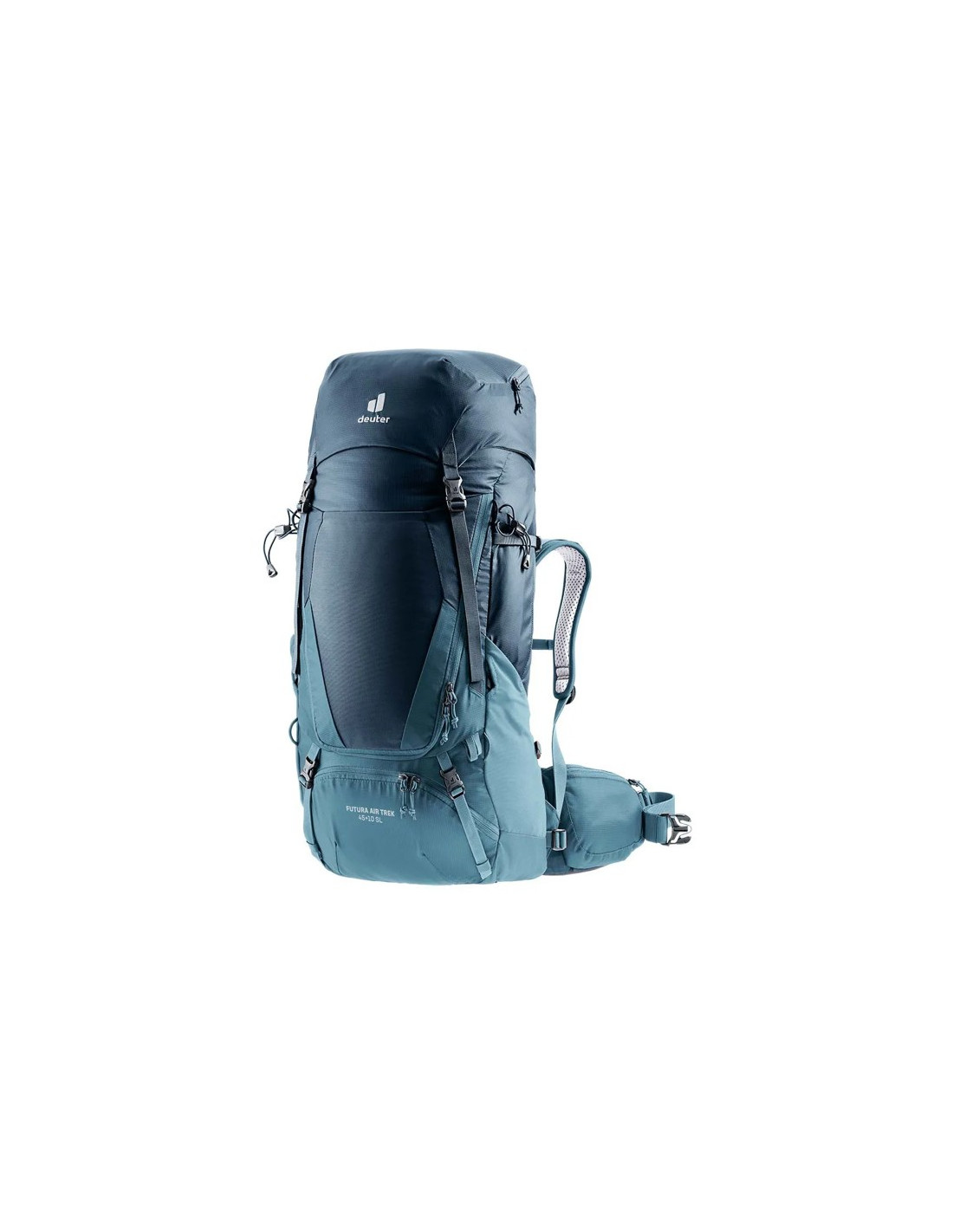 För effektiv organisation av utrustningen erbjuder Futura Air Trek 45 + 10 SL gott om åtkomst framifrån, en sidobälgficka och ett höjdjusterbart lock som ger ytterligare 10 liter kapacitet. Dessutom har den ett separat nedre fack med dragkedja, kompatibelt med vätskesystem upp till 3 liter, elastiska sidofickor, ett integrerat vattentätt lock, ett invändigt fack för värdesaker, ett elastiskt innerfack för våta kläder eller vattentanken, en ficka i locket, kompressionsremmar, en nyckelklämma och en namnbricka.