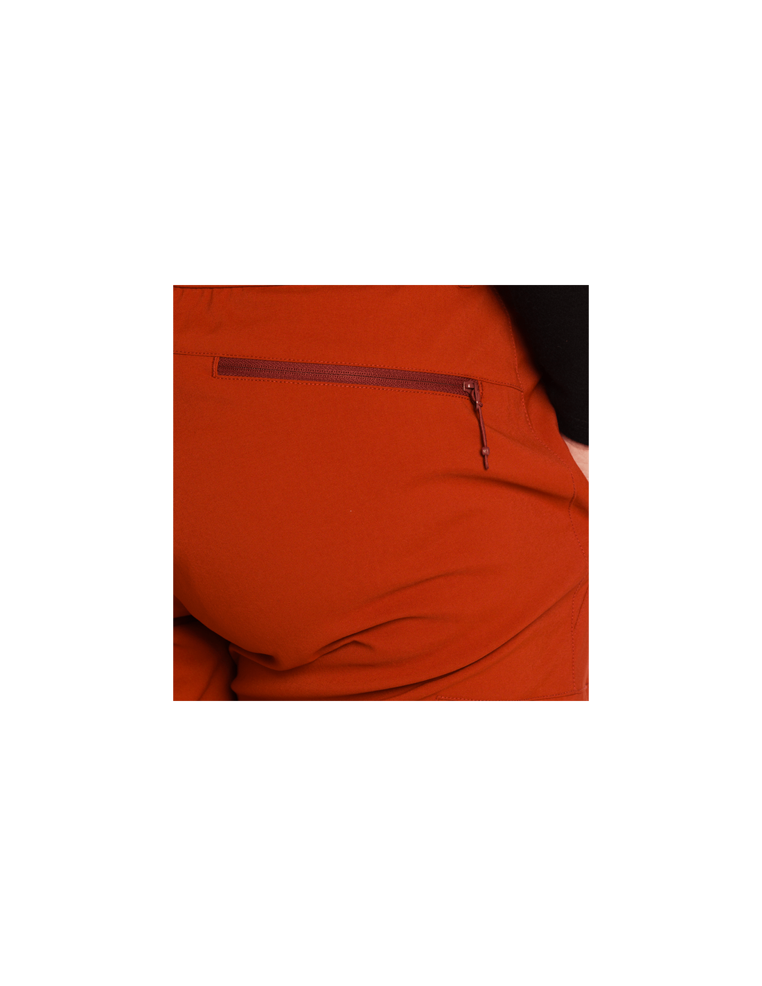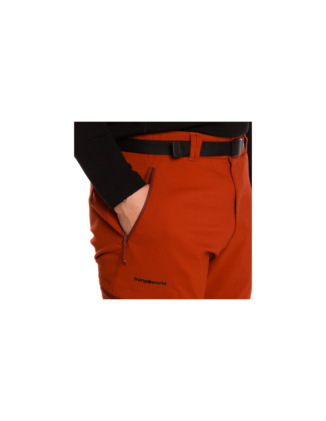 Midja med resår och bälte · Blixtlåsgylf med lock · V-mönster · Midja med tryckknapp · Sidfickor med synlig dragkedja · Horisontella benfickor med dragkedja · Bakficka med dragkedja · Meshfickor
